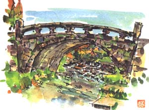 | 秋月 | [伝統的建造物群保存地区一覧] | 秋月といえば、日本史で習った「秋月の乱」を思い出す向きが多いだろう。西南の役につながる不平士族の反乱と明治政府による鎮圧という文脈で語られる事件である。ならば江戸期の秋月はどこかの殿様の城下だったのだろうと推察できる。事実そうである。黒田家五万石。福岡・黒田52万石の分家である。 | 現在の秋月は福岡県甘木市秋月。甘木市街から北へ、国道322号線を筑後川の支流(小石原川)に沿って、5km程遡ったところにある。甘木バスセンターからバス便もある。国道はバイパスされているために穏やかな佇まいのままである。城址は中学校になっている。遠く戦国期にできたとされる 黒門 や 長屋門 が秋月の代名詞的存在となっている。街の入り口には 石橋(眼鏡橋) があり、城跡に近いところには 一直線に伸びる馬場跡(杉の馬場) といった史跡や、 特産の鞠 が出迎えてくれる。 水の豊かな土地 で、そのせいでもないだろうが訪れたときには雨に降られた。総体として西日本らしいまとまった「里」の雰囲気を楽しめる。 |