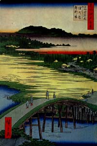 「広重 名所江戸百景」から「高田姿見のはし俤の橋砂利場」 |