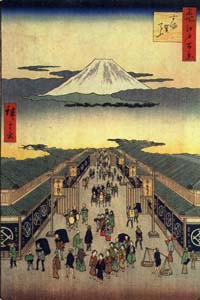 「広重 名所江戸百景」から「日本橋雪晴」 |