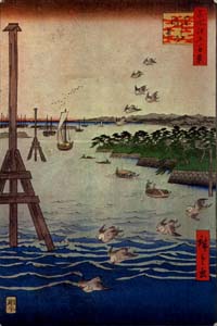 「広重 名所江戸百景」から「鉄砲洲築地門跡」 |