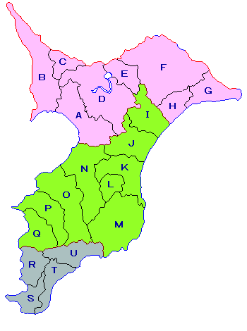 | 郡域を指標とする県域区分 | 主な自治体 | 「日本一巡」順路 |