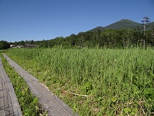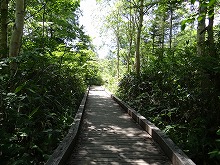 しばらくはがっちりとした木道を行く。あとから車いすでも尾瀬が楽しめるようこの区間だけの特別な木道だと知った。木立ちのなか幾組のペアとお約束のあいさつをする。慣れた感じもするが清々しい。しばらくして木立ちを抜けると尾瀬らしい湿原に出る。木道の下は確かに湿地である。木道の先のベンチで家族が弁当を広げている。妻と子どもたちを置いてきたことを少し後悔する。それにしても、あたりは静かだ。風の音とトンボの羽音。取り出したカメラのフォーカスを合わせるモーター音がうるさく感じる。気分が高揚してくる。林間で中学生ほどの列とすれ違う。あと御池までどれくらいかかるかと尋ねられ、あと30分ぐらいだろうと答えた。わたしの山体験の基準は東京八王子の高尾山である。林間に入ると険しい箇所もあるが、朽ちている箇所もそこかしこにあるものの複線の木道がどこまでも続く。やはり趣が違う。うれしくなってきた。学生時代にワンゲルのようなサークルに所属したことがある。その先輩に教わった苔むした丹沢や、雨に降られ風邪を引いた大菩薩嶺を取り留めもなく回想する。