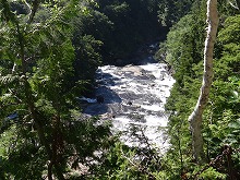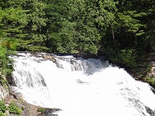 13時45分、御池から5.5km、尾瀬ヶ原(見晴)まで3.9km、三条の滝まで1.2kmの分かれ道に到着。もう少し早い時間に着きたかったがやむを得ない。三条の滝への道は尾瀬回遊の主要路でないことや、そもそも只見川が下刻した急崖で、礫が露出しハードな行路となる。行きはよいよい帰りは怖い的な変わりようである。それでもだんだん滝の音が聞こえてくる。20年ほど前、南米のイグアスの滝に行ったことがある。自転車で向かったのだが、その圧倒的な水量により、はるか遠くからもその舞い上がる水蒸気が明瞭にわかる。周囲は熱帯林で、山火事の煙のごとく朦々とした水蒸気が湧きあがっているのである。話を尾瀬に戻す。足元を気にしながら一歩一歩下る。最後は鎖に摑まって下り、漸く三条の滝を拝むことができる。只見川の本流が数十m落下する豪快な滝である。冬の厳しさのためかやや荒れた観瀑台を独り占めする。14時30分、自宅からリュックサックに入れて背負ってきたスポーツ飲料で乾杯する。
