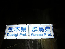 息を整えてのち、吸い込まれるような坑口から入る。背後から明かりが射しているとはいえ、暗闇は怖い。しかし完全な暗闇でないことは心強かった。遥か先ではあっても、どんなに小さな点であっても、出口が見える安心感があった。背後から射し込む外光はすぐに失せ懐中電灯だけの明かりを進む。水たまりではないものの湿った路盤を踏みしめる足音が壁面にこだまする。恐怖心をを抑えるように、何も考えず無心で進む。立ち止まってみる。振り返ると、さっきまでいた坑口の明かりのほうが遥かに大きい。まだまだ先は長い。一層機械的に先に進む。群馬・栃木県境のプレートが照らし出された。反射材が使われている至って普通のプレートである。前回光らせてもらったのはいつ以来か。彼は黙して語らない。彼の生涯でこれまで何度もなかったであろう記念撮影をする。こうして栃木県に入った。