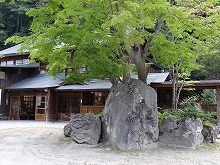 八丁の湯の玄関先には立派な楓の木があり、紅葉時は風情ある玄関と相まって一幅の絵になるだろうと思われた。荷物を降ろし、まずは露天風呂に向かう。さきほど見た八丁湯沢が滝を懸け、ささやかな渓流が眼下を流れる。やれやれと脚を伸ばす。下り坂を踏みしめてきたのか両足の爪が赤い。内出血しているようだ。特に左の親指と右の小指がひどい。どす黒さがあるが真っ赤である。痛みは全く感じないが、いくつかの峠(燧ケ岳、三平峠、奥鬼怒トンネル)を越え通常の力以上に肉体は頑張ってくれたようだ。露天風呂を堪能したのち食堂へ行く。既に席はほとんど埋まっている。男ばかり5人連れのグループに目が行く。『唯脳論』や『バカの壁』などの著書で知られる解剖学者の養老孟司先生が助手4人と逗留している風情なのである。思い当たることがある。この八丁の湯の玄関と鬼怒川の間に3m四方程度の白い幕が吊るされている。夏休みに入っているのでなにかのイベントのような気がしつつ、その脇を通って玄関に入ってきた。なにかがある気がしていた。もちろん私は生の養老先生に会ったことはない。画像・映像で知るのみである。私の記憶のなかの映像に比べると少しふっくらとしている感じはあったが否定する気にはならなかった。周囲の従業員や他の客も特に意識しているようではない。私もあえて尋ねて確かめる気はなく鶏の一人鍋をつついた。