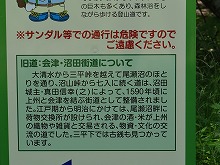 ほどなくして三平峠に向かう山道に入る。ここの山道でもまだ複線の木道がある。木立を抜けていくといよいよ尾瀬ともお別れとなる。三平峠、標高1,762m。3-4人ほどの登山者が腰を下ろしている。私も小休止後すぐに下る。今日これから奥鬼怒まで長躯するため、先を急ぎたいのだ。単に距離が長いだけではない。一般車輌通行止めの奥鬼怒林道を徒歩とはいえ果たして通行できるのか、確かめないまま来ている。仮に通行できない場合、大きく迂回する必要がある。本来、尾瀬の次の目的地は華厳の滝なのだが、今晩の宿として予約している一軒宿の秘湯も、もう既にそれに劣らない魅力になっている。大きく迂回しても今日中にたどり着ければよいのだが、たどり着けずにキャンセルとなる惧れもある。早く見極めたいので早朝から急ぎ足となっている。