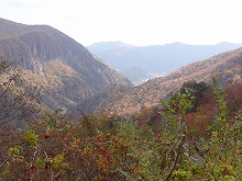 峠を過ぎると、木立ちに隙間があるせいか、午後の日差しが射し込むようになる。色めきたった木々はもとより空の青さを一層鮮やかに感じる。対岸に見る山肌も見えるようになり、個々の木々がそれぞれに色彩を主張している。もう足尾市街に予定時間に間に合うことにまったく頭になくなった。むしろこういう旅がしたい、したかったんだと思える。旅程があるが縛られないことになってきた。