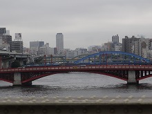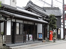 大通りを越えて嘉右衛門町に入っても街の雰囲気は当然のことながら変わらない。道は適度な幅員があり、道の左右に立派な日本家屋・店舗建築が点在する。漆黒の板張りの日本建築である。今日は一日曇天であったが、案外それもよいものだと思わせる。高揚した気分で歩いていくと岡田記念館前に至る。その由緒書に拠れば、岡田嘉右衛門は現当主で26代。栃木市屈指の旧家。元は武家だったが、近世初頭の慶長年間に帰農し、例幣使街道栃木宿本陣、近郷一円の代官職も務めたという。その邸内が岡田記念館として公開されている。時間に余裕があれば入ってもよかったが、午後5時までの開館時間のところ既に4時半を回っており、素通りすることにした。すぐ近くに巴波川(うずまがわ)に架かる石橋の嘉右衛門橋があり、さらに入ると翁島と名づけられた岡田記念館の別邸があるが、こちらにも入館料が必要な施設らしく下男たちが働いているようであった。
