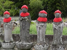 ここで各駅停車に乗り換える。今回の目的地は栃木市嘉右衛門町で、その最寄り駅はこの新栃木駅である。今日はこれから電車で行って歩いて帰ってくるルートとなる。ここまでくると電車の本数は1時間に一本である。特に快速電車と接続せず、20分ほど待って各駅停車の電車が来た。沿線の風景は特に目を奪われるようなものはなく、曇天のなか樅山駅着11時20分。新栃木駅からさらに1時間ほどかかって到着した。前回は菜の花や桜に包まれた駅であったが、菜の花は既になく桜木も葉を青々と茂らせており、だいぶ印象が異なる。徐に歩き始める。まずは例幣使街道に合流する必要がある。線路に沿いつつも、畑と家が混在する田園を進んでいく。廃墟のような跡ももちろん目につくのだが、案外と洒落たログハウス風の住宅も点在する。いかにも農家というたたずまいの家もあるのだが、それだけではないのが驚きであった。くるまの通る現代の例幣使街道を延々と歩いてきたが、街道を離れて歩くのも、むしろ楽しい。辻には地元の人の丹精が偲ばれる地蔵もある。赤の毛糸で帽子や前掛けが作られ、石の肌ととても緋色具合があっている。