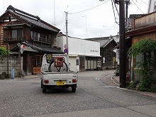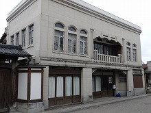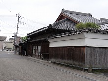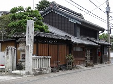 例幣使街道は東武日光線を越えるため上り下りする。その頂上から新栃木駅に隣接する電車庫を見下ろせる。昼間なので、半分くらいの線路には四角い形の電車たちが休んでいた。坂道を下ると栃木市街で、例幣使街道の本道は県道とは別の道となる。私は当然県道と別れ、幅員の狭い旧道を行くことになる。大町という地区は目的の嘉右衛門町の北隣だが、ここにも十分に価値のあるであろう古店(ふるだな)が集まっている。実際、教育委員会名による由緒書が掲示されており、文化財指定されていることが知れる。