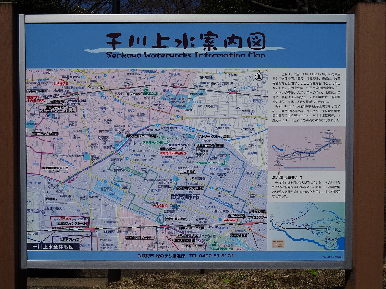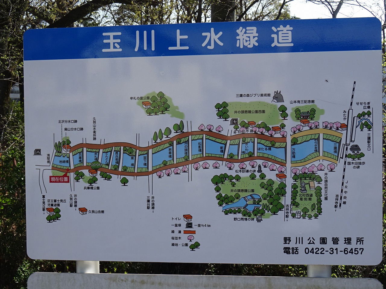 歩行距離:24.0km( 小金井公園桜の園-境橋(玉川上水)-柳橋(千川j上水)-武蔵野中央公園-三鷹駅跨線橋-井の頭公園-久我山駅-浅間橋(玉川上水)-松原交差点-笹塚駅-駒場東大前駅)