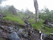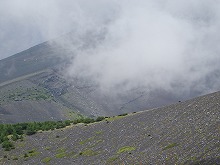 歩行距離:7.4km(富士宮口五合目バス停―宝永第二火口―御殿庭上―小天狗塚―四辻―須山御胎内上―水ヶ塚公園)